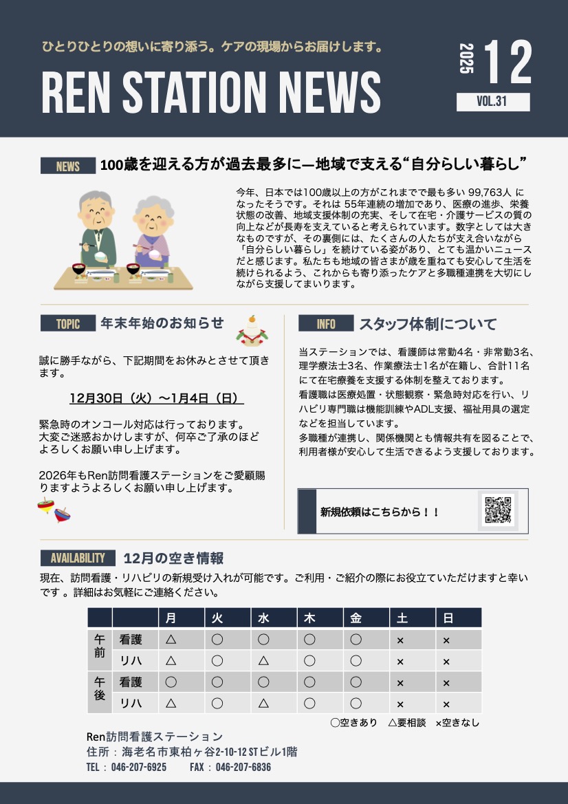 2025.12.10 お知らせ 年末年始について 関係各所の皆様、2025年は大変お世話になりました。年末年始の営業についてですが、誠に勝手ながら2025年は12月30日(火)〜1月4日(日)までが休業期間となります。なお、緊急時の対応に関しては引き続き行っておりますので、早急な要件がございましたら下記連絡先までご相談ください。 どうぞよろしくお願いいたします。 緊急連絡先:090-6566-4932 Top
